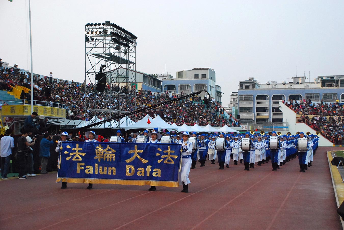 ![]() 天国乐团进入体育场时受到观众热烈欢迎 |