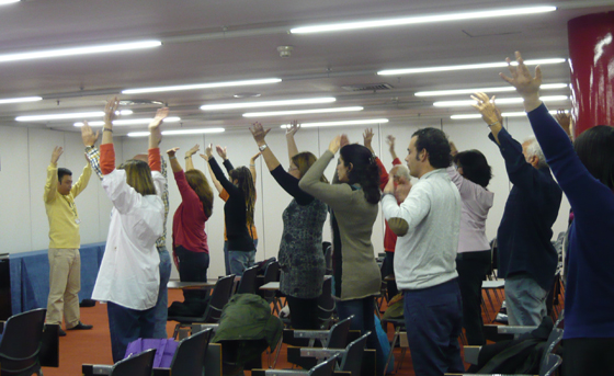 ![]() 在法轮大法介绍会上,与会者学炼五套功法 |