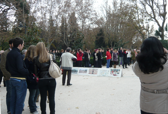 有一位中年女士特地从距离马德里一百多公里处赶来参加博览会,她对学员说,她来这里就是为了寻找一条通天的路,她认为法轮大法正是她要寻找的。这位女士还说她所在的城市有一个群体,她希望邀请法轮功学员们去她们那里介绍和教授法轮功。