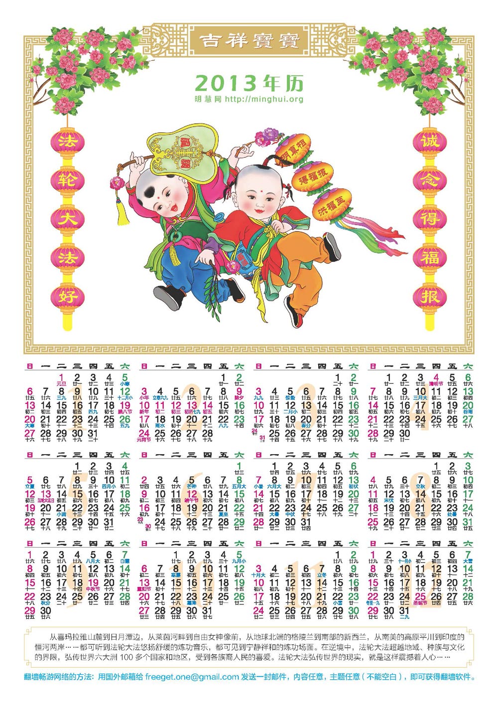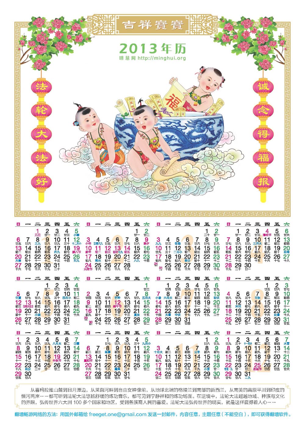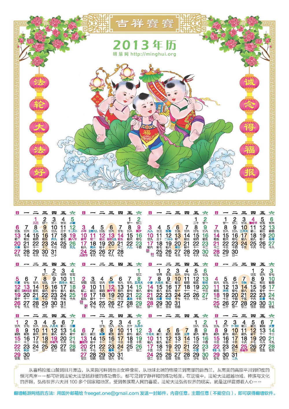 【明慧网二零一二年十二月六日】2012年12月25日更新福娃娃年历三幅。请从新下载。