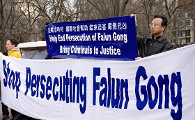 法轮功学员白宫前责令停止迫害、法办迫害元凶