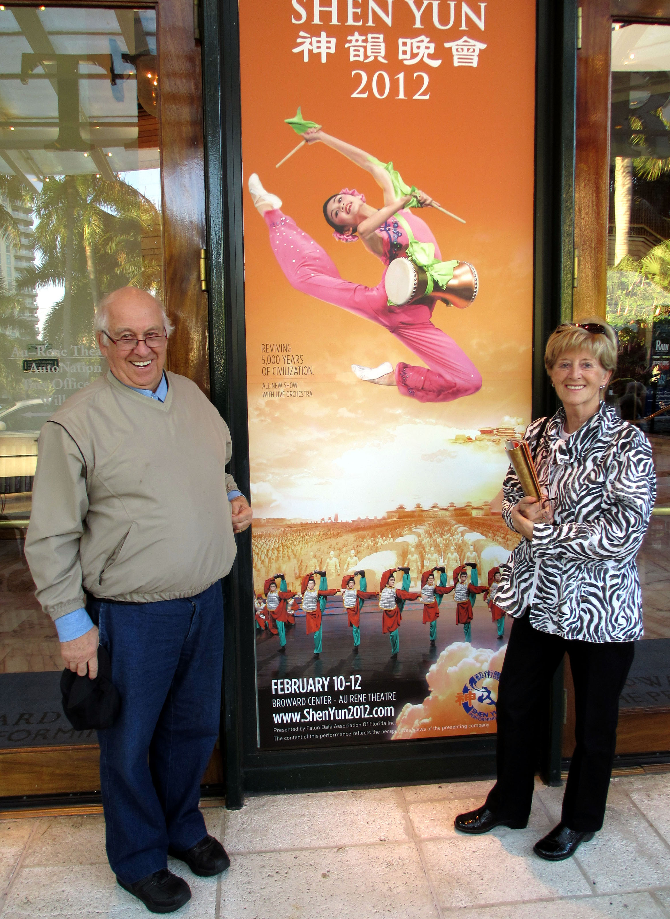 “我们穿过半个地球,从加拿大北部来到美国佛罗里达州,就为了看神韵。”来自加拿大蒙特利尔的纪念品商店老板雷蒙德‧杜瓦尔(Raymond Duval)先生和妻子拉格茹赫尼(Lorurinni)终于如愿以偿观看了神韵。