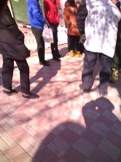 二零一二年二月十七日,周向阳的老父亲在再次要儿子无结果的情况下,穿上状衣站在滨海监狱门口,等待监狱能尽快答复。周向阳父母是经过一天半的奔波,驾驶自家的手扶拖拉机到达天津市港北监狱(现更名为滨海监狱)的。