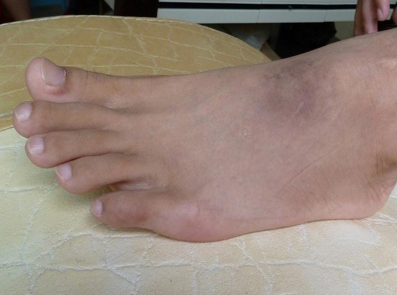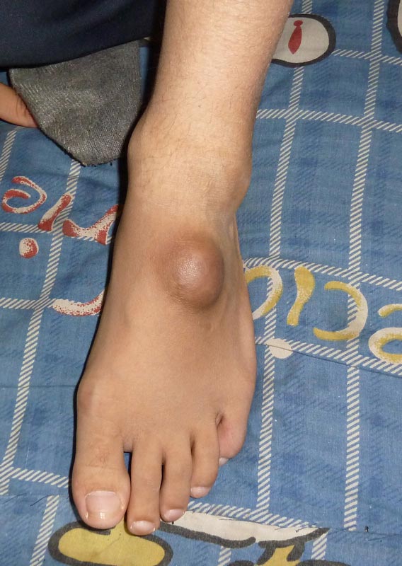 ![]() 二零一一年四月拍的照片:脚上如核桃大小的硬鼓包。 |