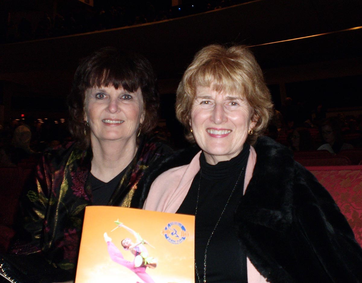 ![]() 纳什维尔公共电视台首席执行官贝丝·柯利(右)与画家朋友莎莉都很喜欢神韵晚会 |