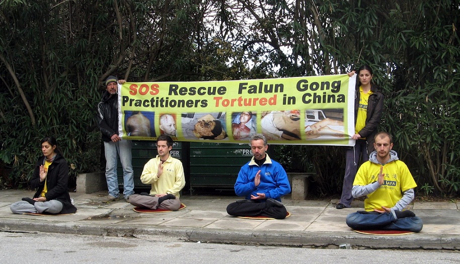 ![]() 希腊首都雅典,1月27日,法轮功学员在中使馆对面反迫害。 |