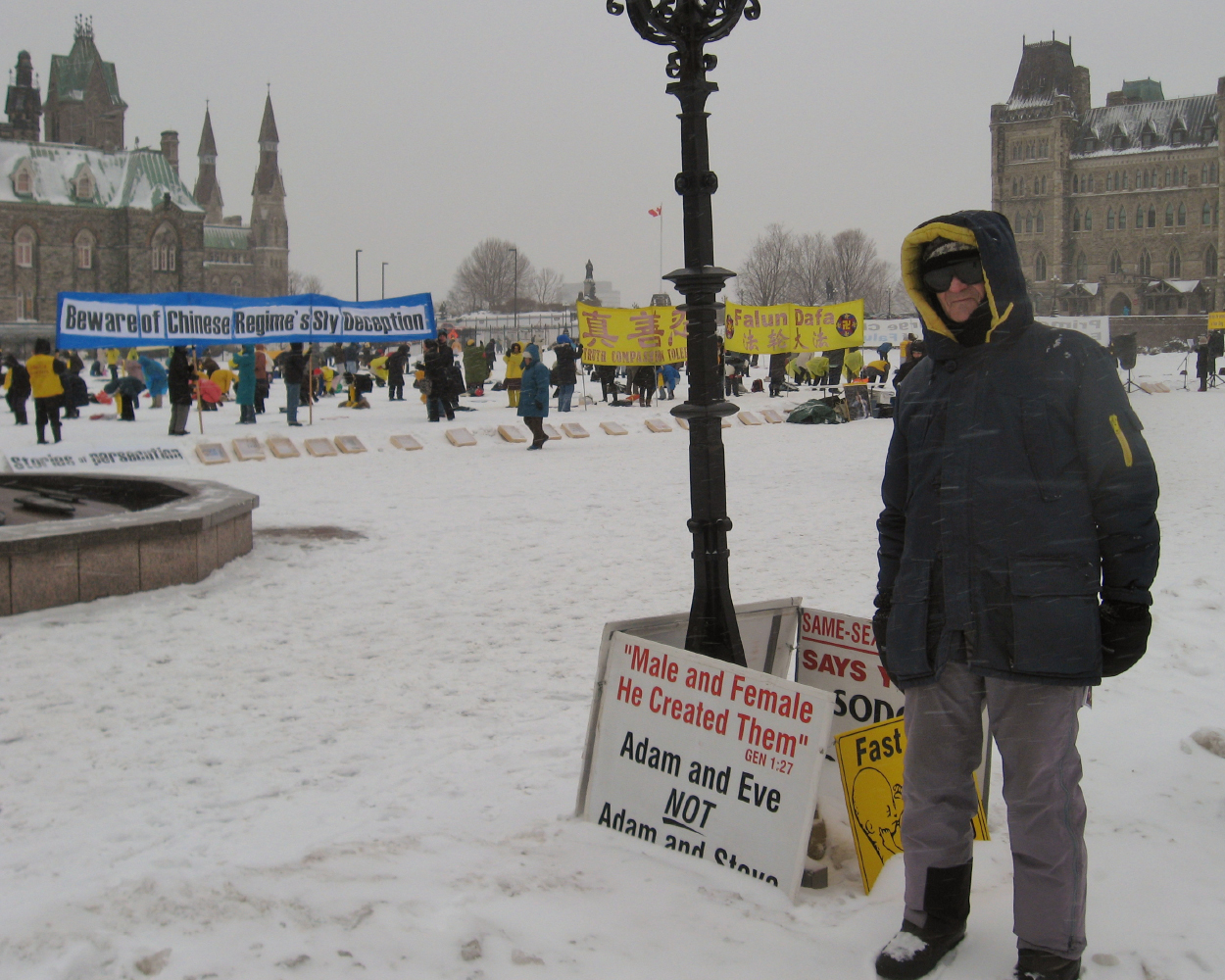 来国会山呼吁制止堕胎的托尼(Tony Van Hee)神父是这里最资深的请愿者。早已熟悉法轮功,也见惯了形形色色的示威请愿人群的他,今天还是异常感动。