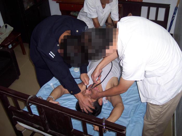 他们对法轮功学员的所谓“治疗”,就是故意加重迫害,插鼻饲管时有意乱插乱捅,加重痛苦;静脉输液,针头反复乱扎,能通过一般治疗解决的,非要动手术,根本不考虑其人的身体状况和对以后造成的不良影响,连医务人员最起码的医德也不讲。有的法轮功学员绝食好几个月,只要上午吃饭,下午就送回监狱,根本不考虑使其身体恢复一段时间,甚至有的还戴着鼻饲管,身体还有多种疾病就送回关押场所。