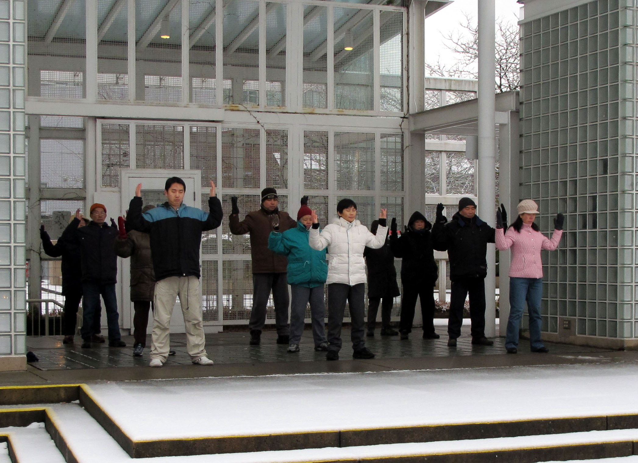 小刘说,迫害前在中国都是天天集体炼功,也是这么早的时间开始,习惯了。后来中共迫害法轮功,炼功的环境破坏了。来加拿大后又可以集体炼功了,多好啊!小刘觉得集体炼功时能量场很强,感觉特别好。以前走路有时感到腿很沉,参加集体炼功后,走路腿就感到很轻。