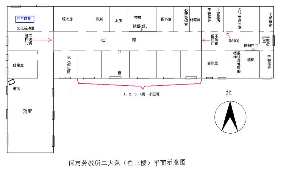 八月十九号上午,李党等三人把我拉到劳教所,又出来到东风东路保定市三医院“体检”,又回到劳教所。在劳教所医务室,强迫我脱光衣服所谓“检查”,称体重,当时我只有一百斤。最后把我弄到“二大队”(在三楼)。李党手下那个警察给了我一张“劳教通知书”,他们走了。