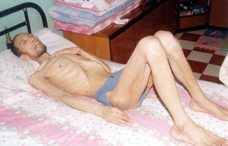 | 修炼大法后身心快乐的马学俊 | 被邪*党-迫害致残、奄奄一息的马学俊(摄于二零零三年年末) |