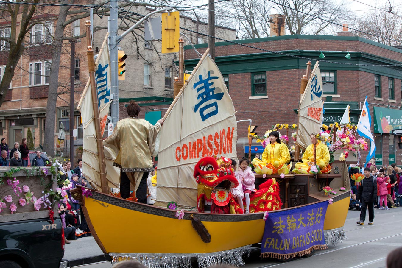 伊桃碧谷(Etobicoke)华裔居民董先生和太太林女士第一次带孩子来看复活节游行。林女士表示,对华人组成的天国乐团和法轮大法花车印象深刻,觉得很漂亮。