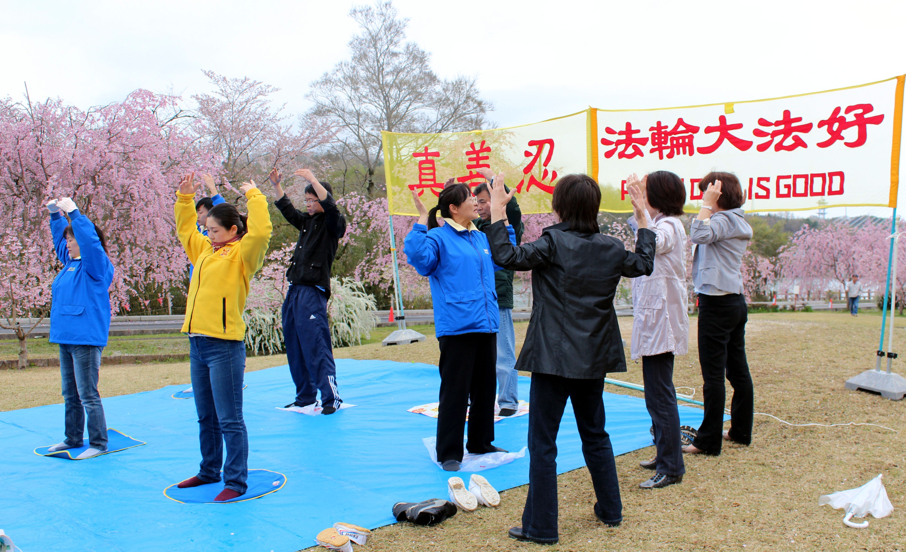 ![]() 法轮功学员在丰田樱花节上演示功法 |