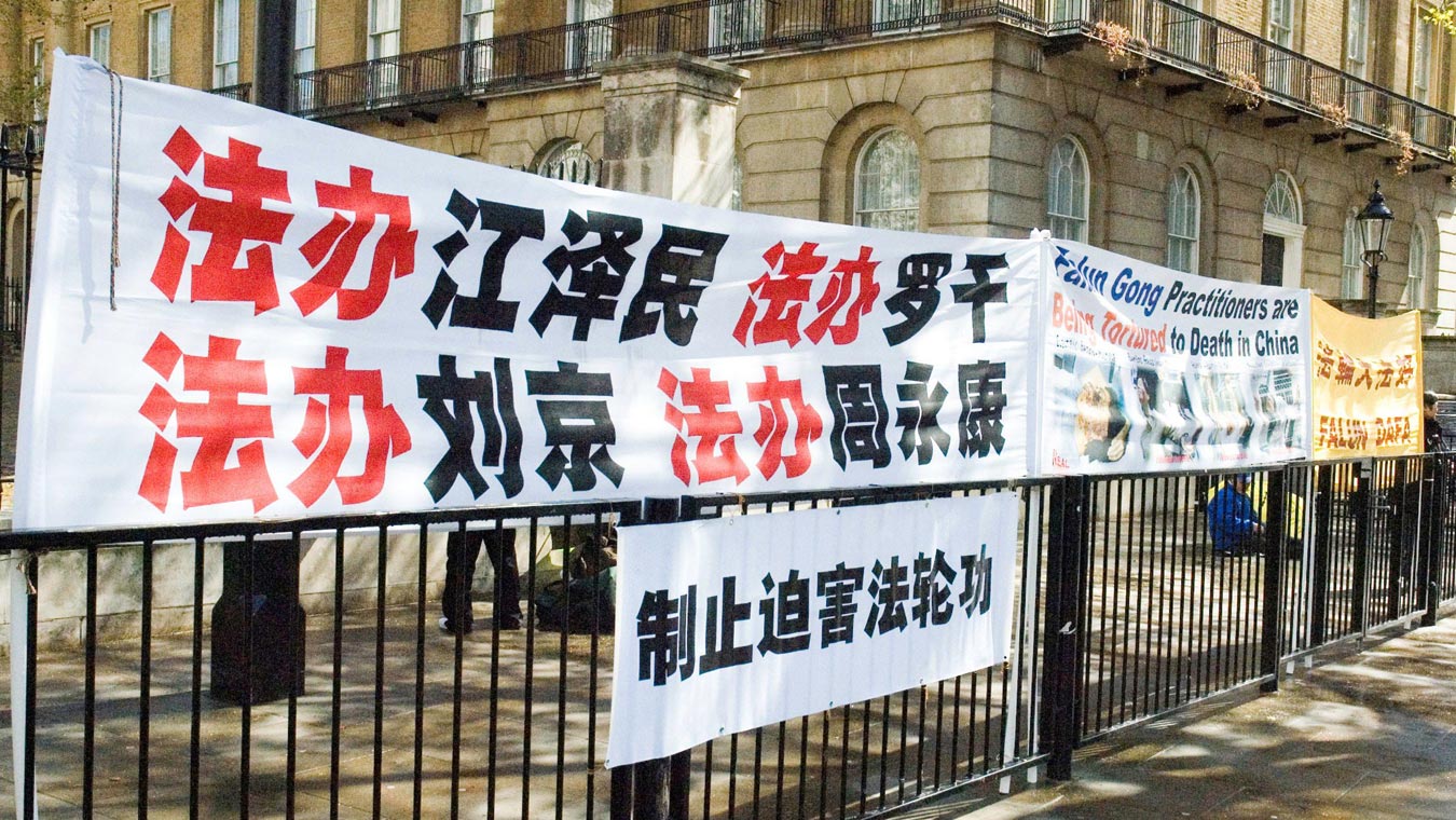 ![]() 李长春访英,法轮功学员在英国首相府对面展开横幅抗议中共迫害 |