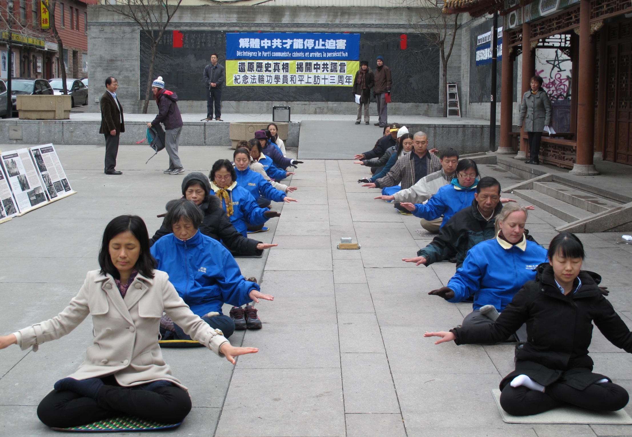 在集会现场,宁静祥和的炼功场面和中共残酷迫害法轮功的事实形成鲜明的对比,许多来自大陆的华人在了解真相后纷纷表示退出中共邪恶组织。