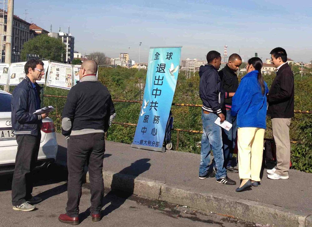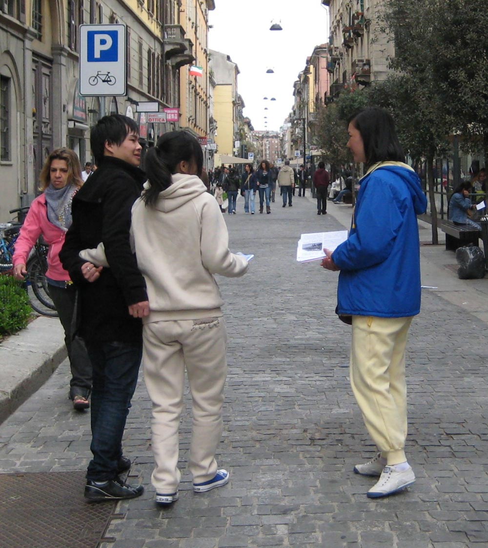 ![]() 米兰华人街的中国人接过法轮功真相资料 |