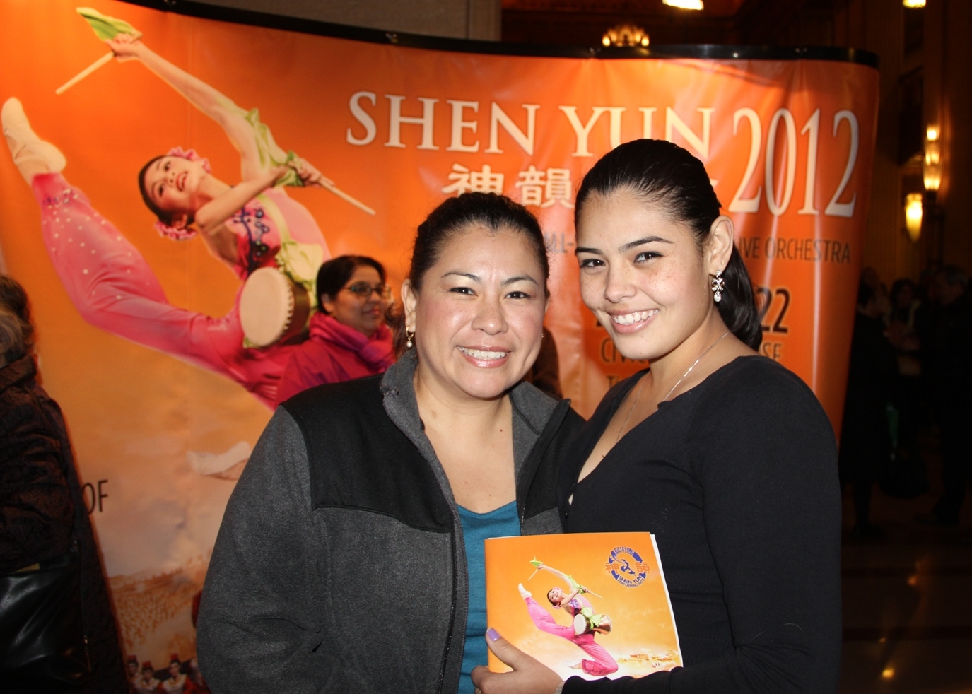 每场演出结束后,都有很多观众仍流连忘返在大厅内,在巨大的神韵广告张贴画前排队留影,来自凌志金融公司的弗洛罗斯(Flores)母女就是其中的观众。女儿梅丽莎‧弗洛罗斯是五金连锁公司——Menards的部门经理。