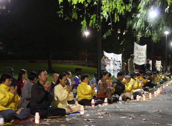 ![]() 悉尼法轮功学员在拜莫尔公园烛光纪念四·二五 |