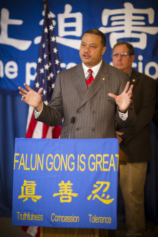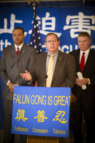 众议员麦克尔•费兹帕翠克(Michael Fitzpatrick)说:“今天很荣幸和这些追求自由的人们站在一起,对中共的迫害表示谴责,我们强烈要求美国五十个州的州政府及立法者,齐声呼吁奥巴马政府对中共对法轮功的迫害予以关注并发出美国政府的声音,声援追求信仰自由的人们,要求中共立即停止迫害法轮功!”