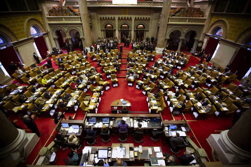 记者会后,七十多位法轮功学员在众议员史蒂文森的带领下拜访了纽约州众议院议会大厅,受到全体议员的热烈欢迎。