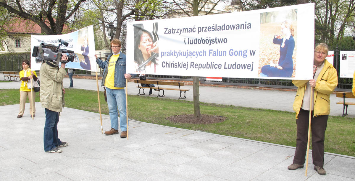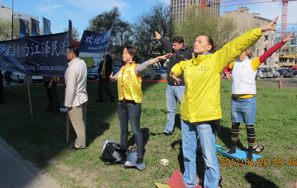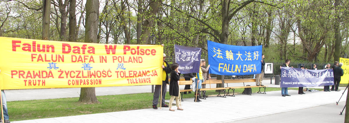 今年的四·二五,恰逢中国总理温家宝开始对波兰进行两天的正式访问,这是二十五年来,中国总理首次访问波兰。波兰法轮功学员和来自斯洛伐克、匈牙利的学员一起在温家宝所到之处举行了一系列活动,纪念“四·二五”,抗议中共迫害法轮功,要求法办迫害元凶——江泽民流氓集团。