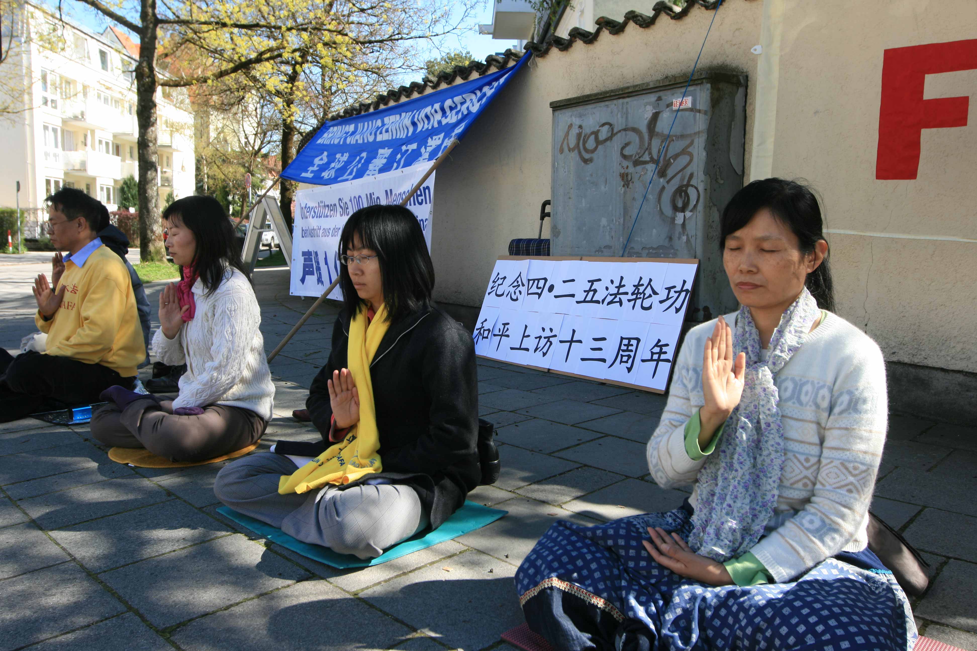 ![]() 纪念“四二五”,德国慕尼黑在中领馆前静坐。 |
