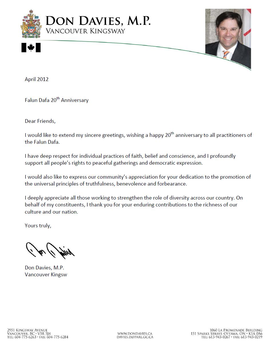 我也代表我们的社区,感谢你们为弘扬“真、善、忍”的普世价值而做出的不懈努力。
