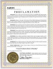 鉴于,法轮大法创始人李洪志先生已帮助全世界上亿人们增强身心健康,以及使他们通过修炼法轮功加深了对生命、人生、以及宇宙的认识;