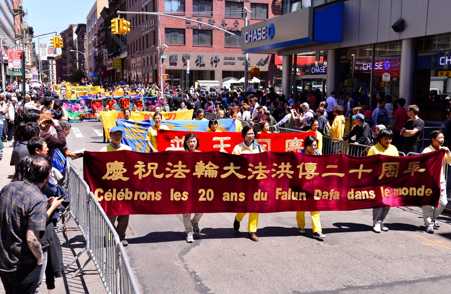 今年的五月十三日是法轮大法洪传二十年的纪念日,在五月十二日这一天,约七千名来自世界各国的法轮大法修炼者代表在纽约曼哈顿唐人街举行二十周年庆祝游行。今年观看法轮大法修炼人的游行时,人们内心充满的是欣喜,敬意和对未来的希望。