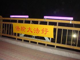 黑龙江省鸡西市大法弟子悬挂条幅庆大法日