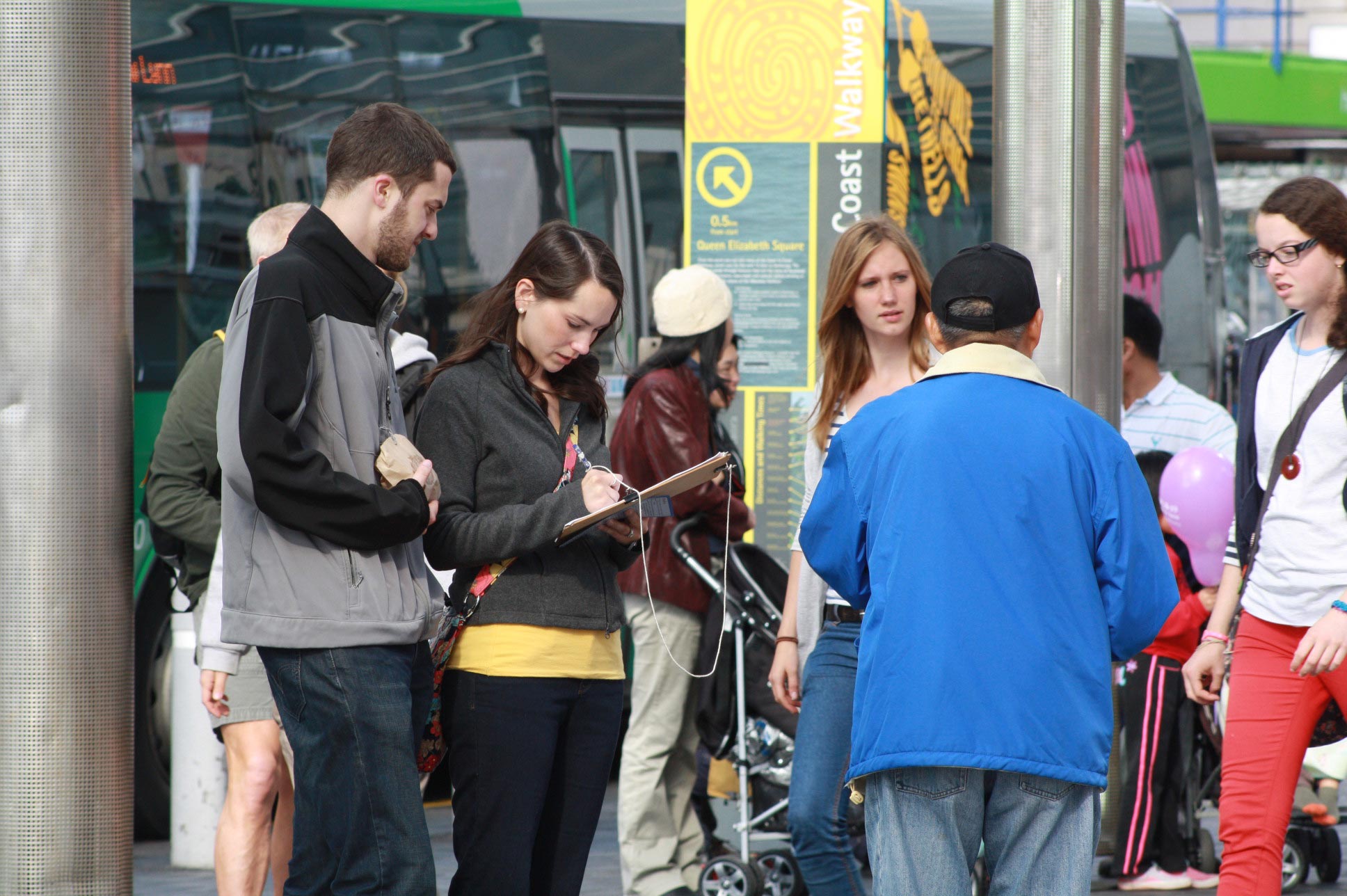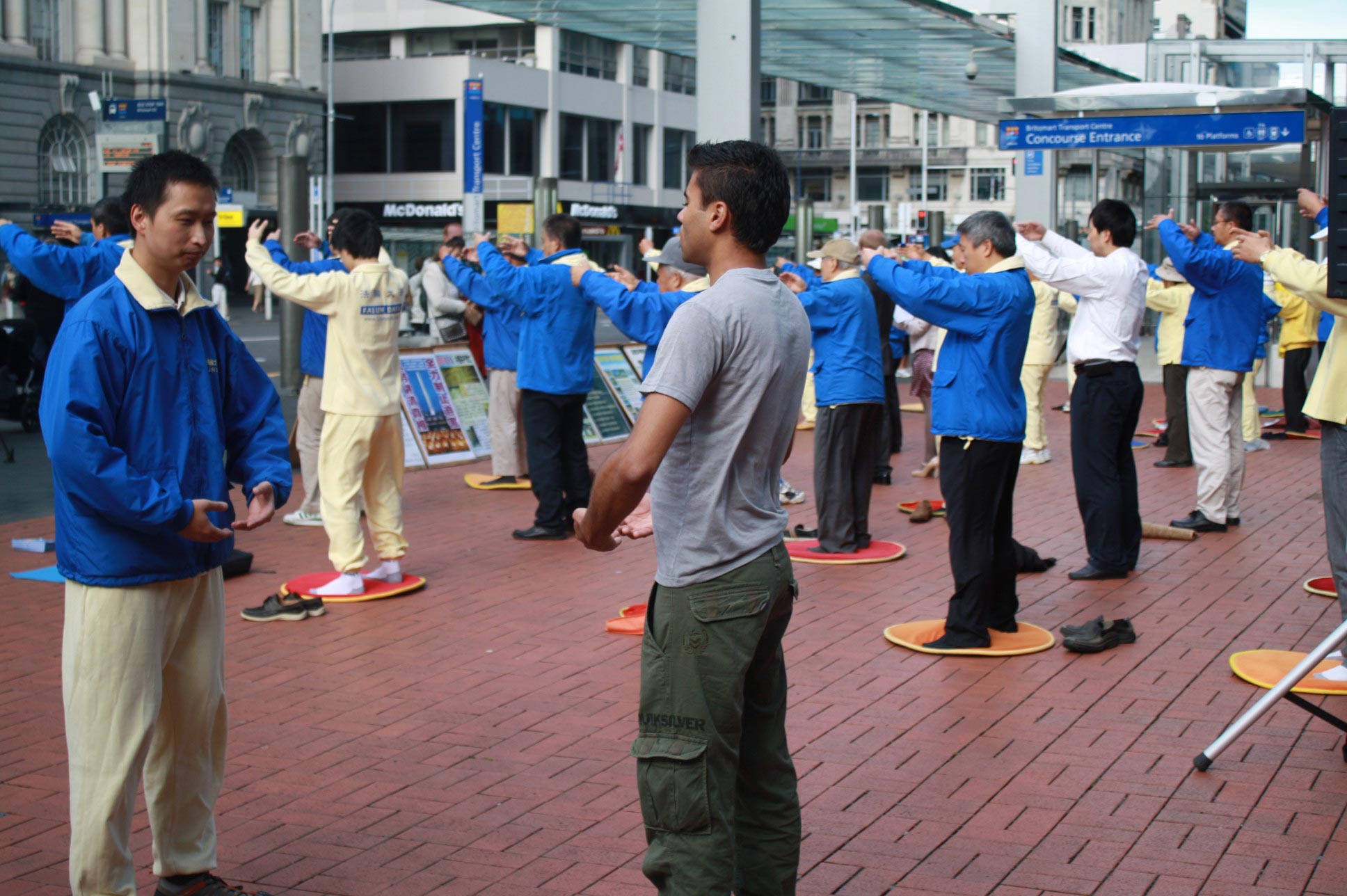 伊丽莎白广场地处奥市中心,是水、陆、地铁的交通枢纽,游人众多。来自奥克兰和附近汉密尔顿市的法轮功学员们在缓慢悠扬的炼功音乐中,向世人展示五套功法、讲解真相。