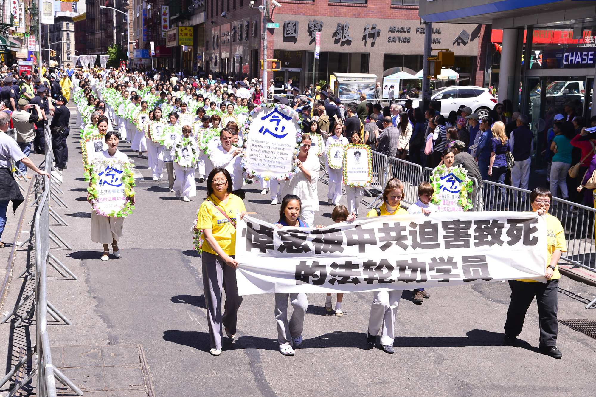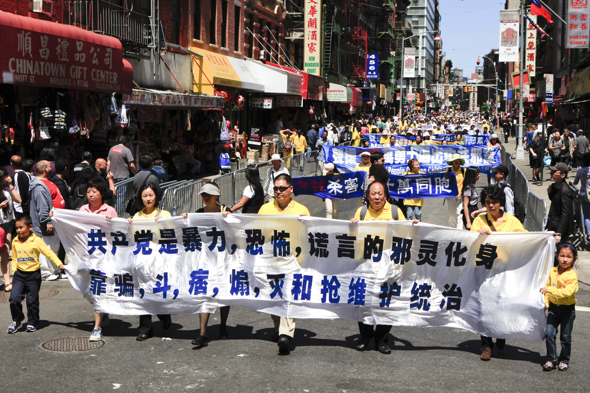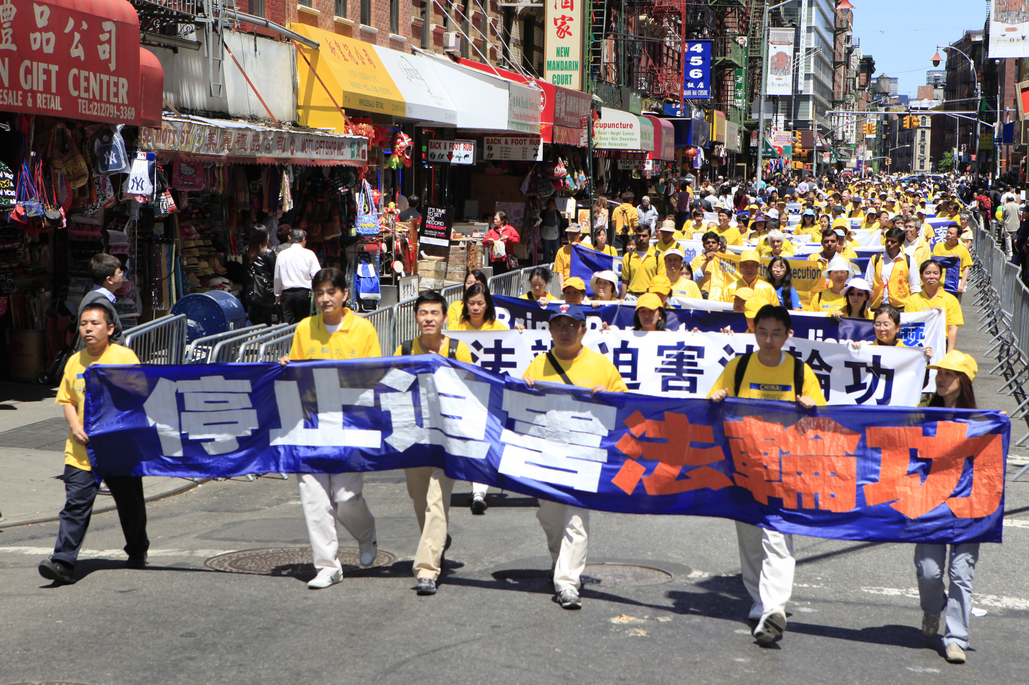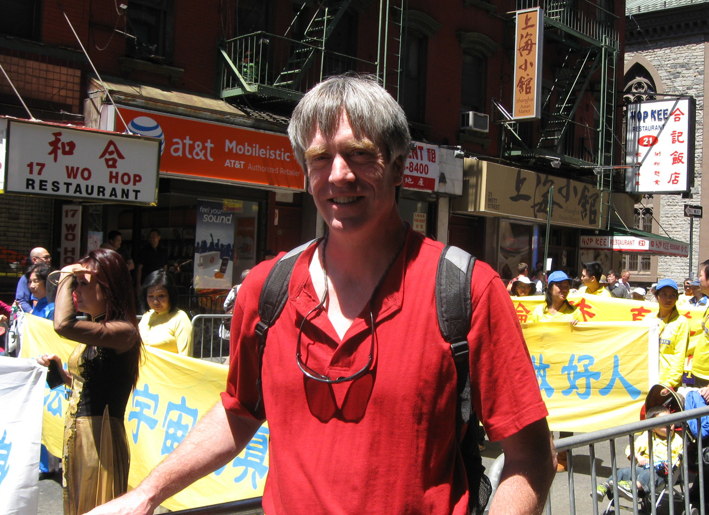 当队伍经过一家教堂门口时,在纽约居住了十一年的陆女士和先生站在门口默默地看着游行队伍的经过,她对记者说:“我从大陆出来十一年了,我虽然是基督徒,但我支持法轮功,我天天看《大.纪.元;时报》,我知道法轮功是非常的正,而中共是非常的邪,所以它要迫害法轮功。但邪的永远不能战胜正的,看看多壮观,多浩大。但有时觉得很多国内出来的大陆人很可怜,他们只听共产党的谎言,不听正的声音。看看《大.纪.元;时报》就知道,共产党快要完了,我天天盼着它灭亡。”