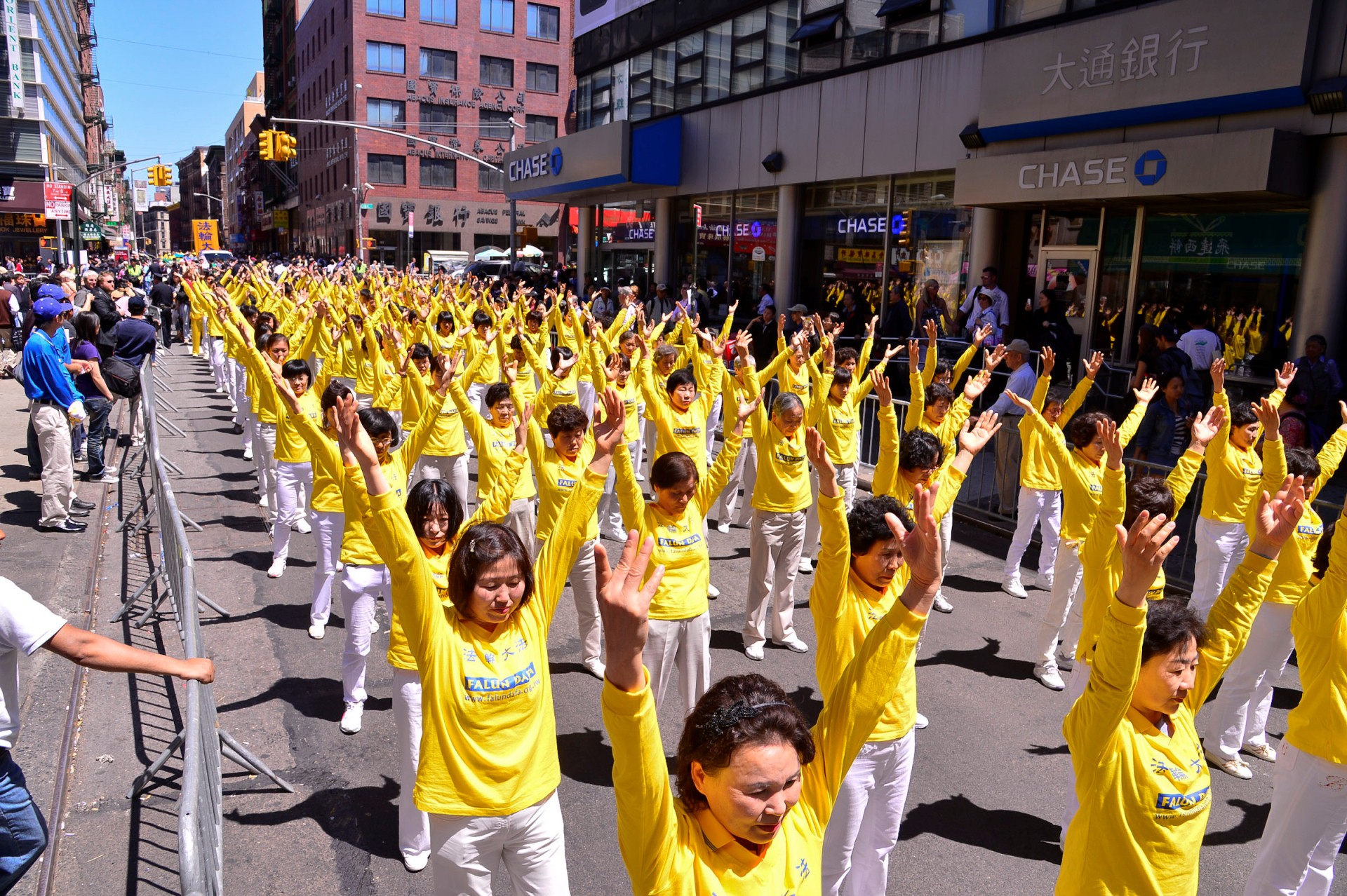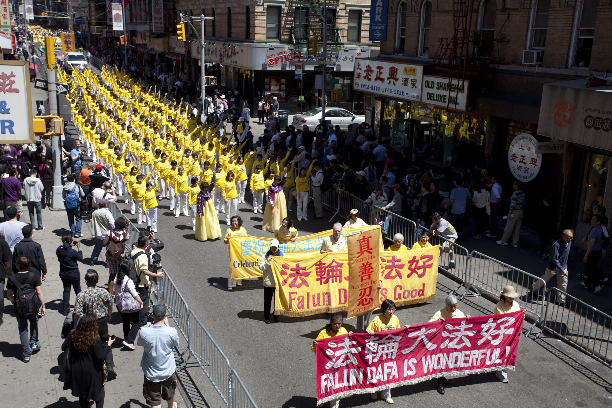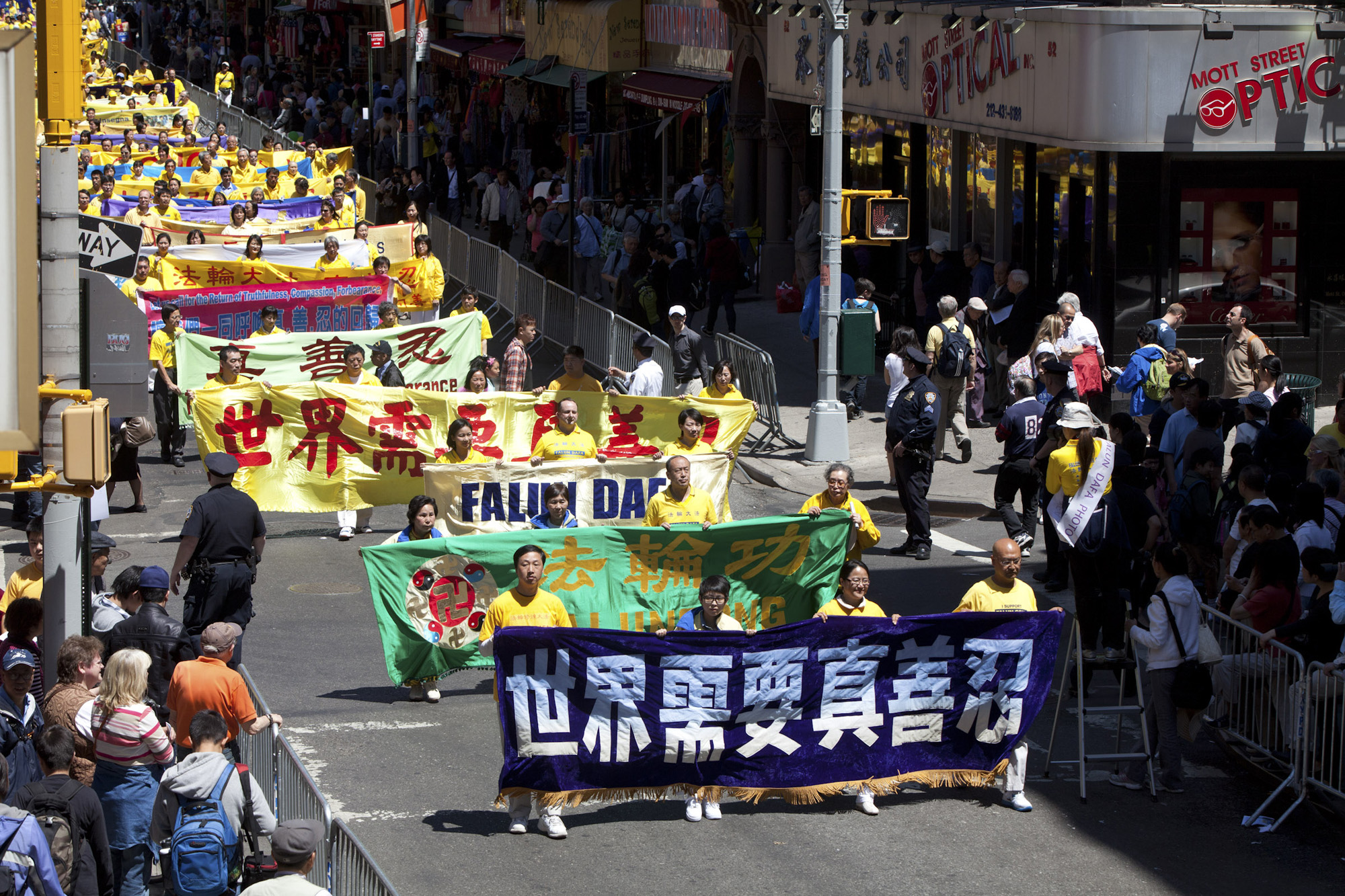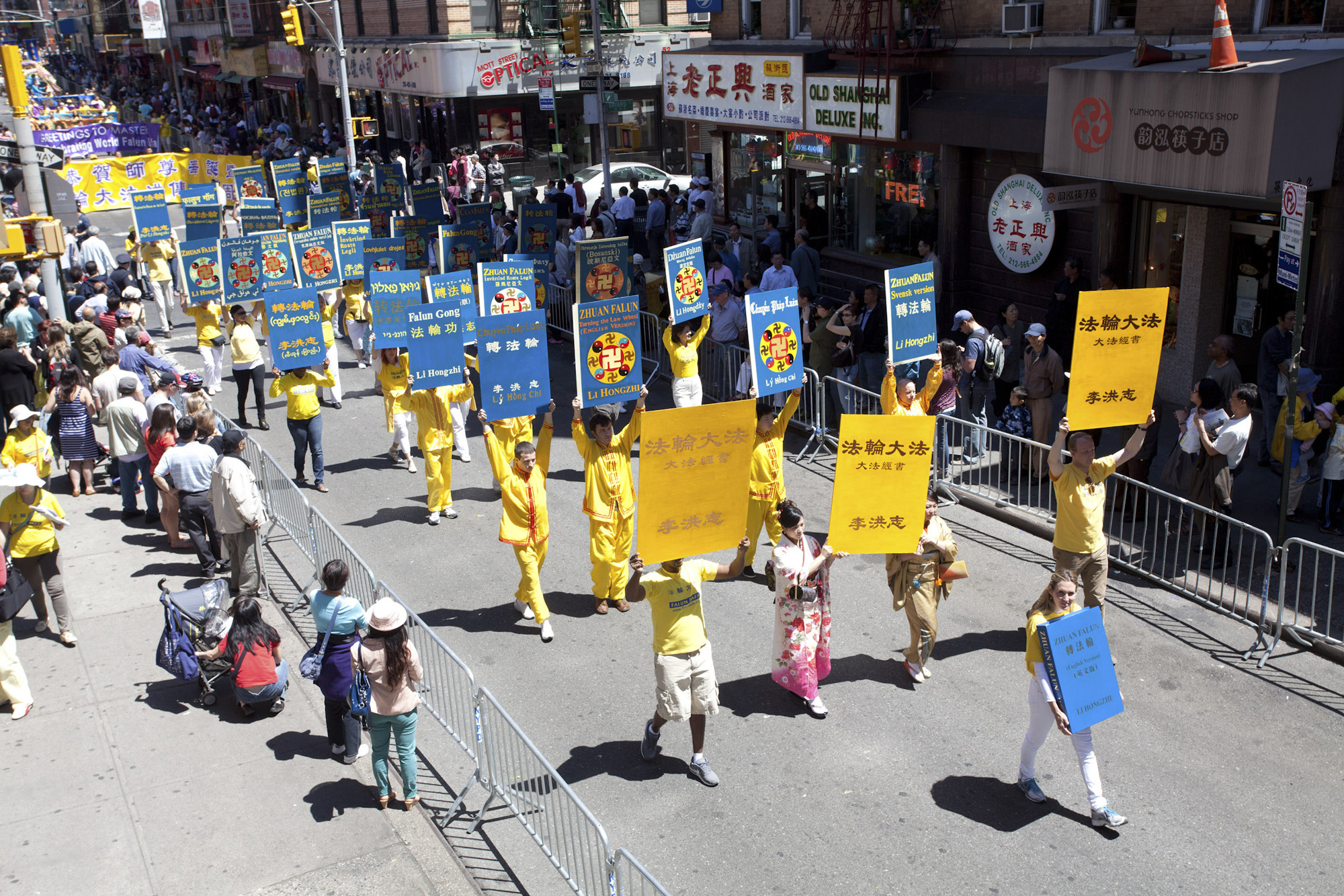 当队伍经过一家教堂门口时,在纽约居住了十一年的陆女士和先生站在门口默默地看着游行队伍的经过,她对记者说:“我从大陆出来十一年了,我虽然是基督徒,但我支持法轮功,我天天看《大.纪.元;时报》,我知道法轮功是非常的正,而中共是非常的邪,所以它要迫害法轮功。但邪的永远不能战胜正的,看看多壮观,多浩大。但有时觉得很多国内出来的大陆人很可怜,他们只听共产党的谎言,不听正的声音。看看《大.纪.元;时报》就知道,共产党快要完了,我天天盼着它灭亡。”