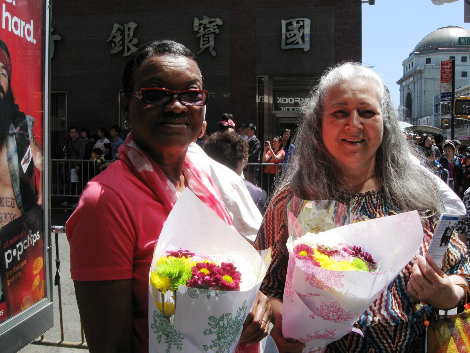 纽约居民Dora说:“在纽约三十多年了,第一次看到这么美好展现的游行,真的很高兴,给我和朋友在唐人街合个影留念。” |
