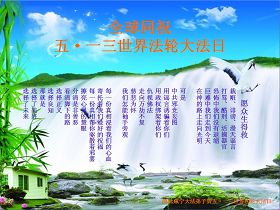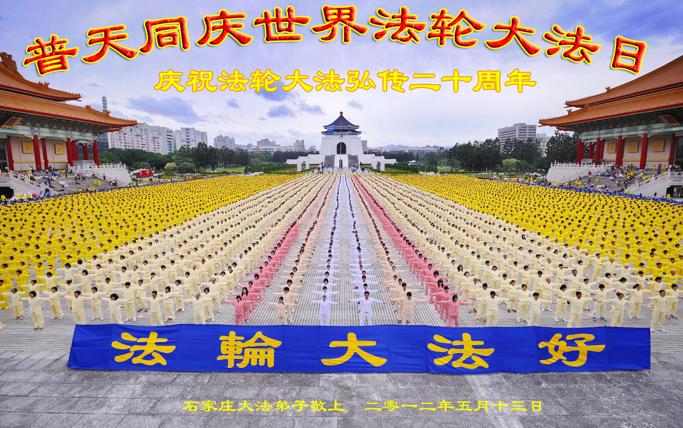 一九九二年五月十三日,法轮功创始人李洪志先生在中国长春首次公开将法轮大法传向社会,“真、善、忍”的法理使人心向善,道德回升,神奇的祛病健身功效吸引了上亿人修炼。法轮大法已传遍世界上一百一十多个国家和地区,法轮大法的主要著作《转法轮》被译成三十多种文字,昭显了其超越种族、语言与国界的巨大道德感召力。在法轮功洪传二十周年的今天,世界各地、不同国家、不同语言、不同种族、不同年龄、不同职业的修炼者纷至沓来,共襄盛举。