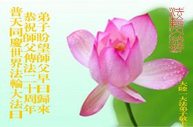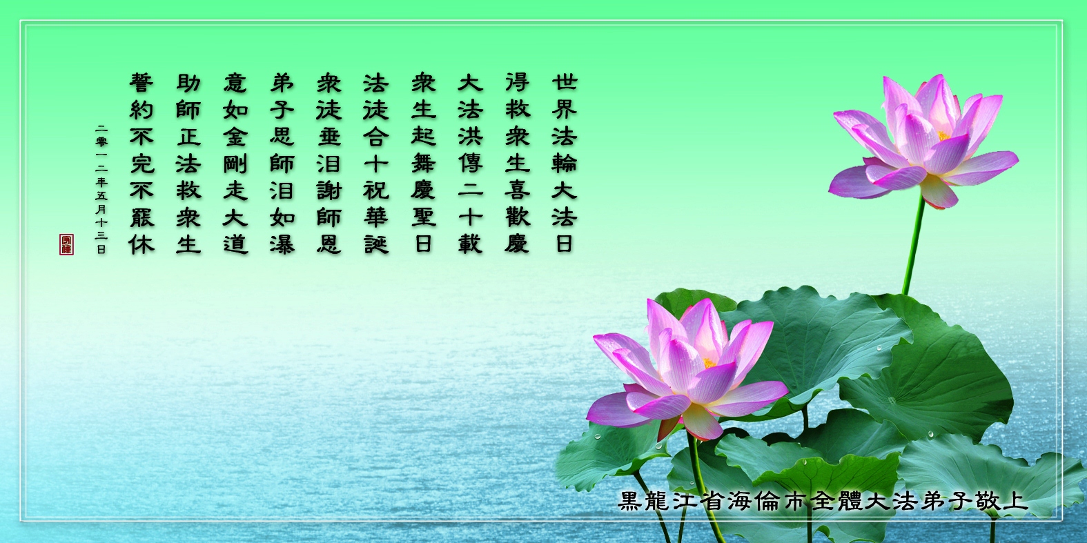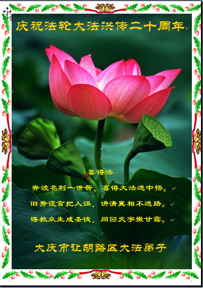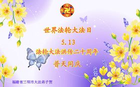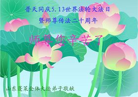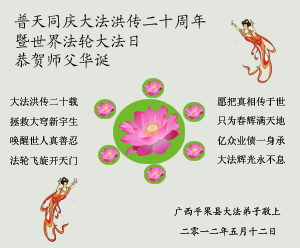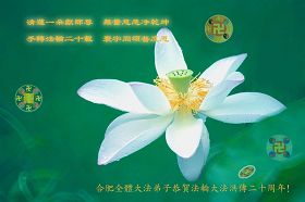 大法洪传二十年了,对我来说是别有一番感受,大法洪传二十年了,如果没有中共的迫害,我不会二零零七年才开始正式修炼,我为失去那么多年宝贵时间而难过。