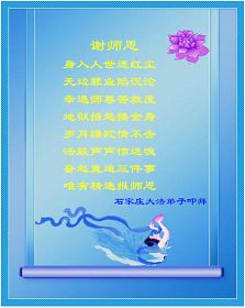 【明慧网二零一二年五月十三日】我是一九九六年春天经同学介绍喜得大法的。刚得法时我还挺精進的,后来我转入一个新的单位。这儿的工作压力很大,整天都在为高考忙碌着,而这里又找不到同修,时间一长我渐渐的放弃了修炼,功也不炼了,书也不看了,整天到晚忙于工作,但我心里一直没有忘记“真善忍”这三个字。在七二零以后,我被邪*党-的谎言给欺骗了,于是在这期间我就中断了修炼,一直到零七年的春天,在师父的点化下我才又从新回到大法修炼中来。我要感谢师父慈悲苦度,还没有忘记我这个不争气的弟子。我差一点错过这万古机缘,对师父的感激无法用语言表达。我只能是勇猛精進来回报师父,回报大法。