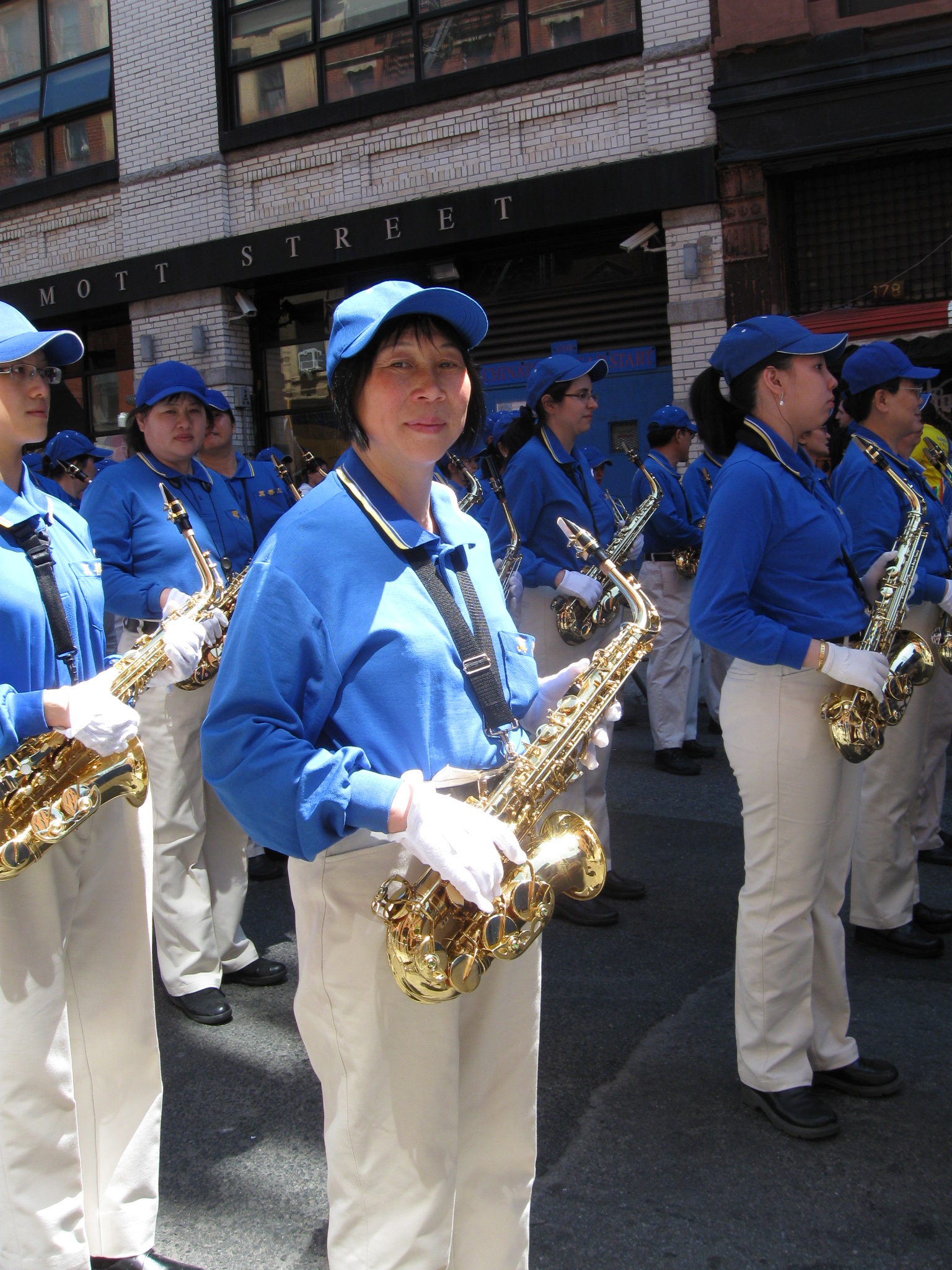 当队伍经过一家教堂门口时,在纽约居住了十一年的陆女士和先生站在门口默默地看着游行队伍的经过,她对记者说:“我从大陆出来十一年了,我虽然是基督徒,但我支持法轮功,我天天看《大.纪.元;时报》,我知道法轮功是非常的正,而中共是非常的邪,所以它要迫害法轮功。但邪的永远不能战胜正的,看看多壮观,多浩大。但有时觉得很多国内出来的大陆人很可怜,他们只听共产党的谎言,不听正的声音。看看《大.纪.元;时报》就知道,共产党快要完了,我天天盼着它灭亡。”