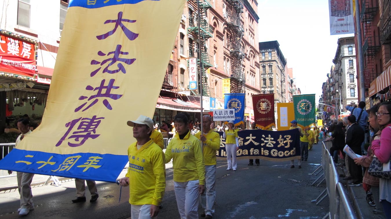 得法后的梁胜,又将自己修炼后的种种神奇告诉了自己的室友关美轩,很快,关美轩也得法了,不知不觉中,困扰关美轩多年的胆囊炎、鼻炎等疾病不翼而飞,现在,她们每周都去参加集体学法,生活美好而充实。当天,三个女孩子一起来到纽约,参加游行。