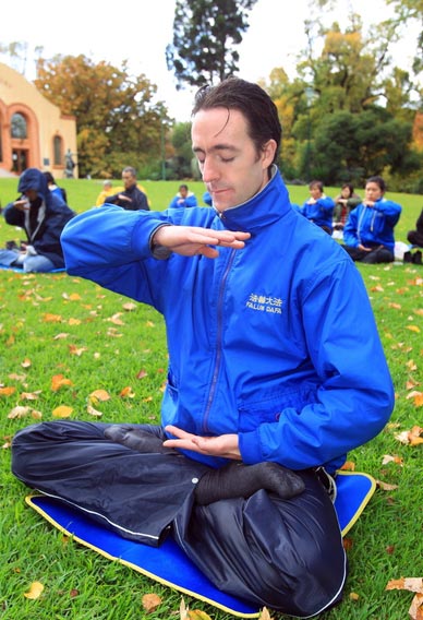 澳籍俄罗斯资深钢琴教师Sergei Suetin先生和妻子也被法轮功学员祥和的炼功场面吸引,主动索要了资料。Suetin先生告诉记者,家人受到苏共的迫害,了解共产党的邪恶本质。他支持自由信仰的权利,并表示回去后要上网了解法轮功更多的详情。