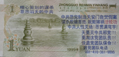 通讯员黑龙江报道)这是黑龙江某大城市流通的真相币,字迹清晰、醒目,内容多样,救度世人效果好,对邪恶起到了很大的震慑作用。