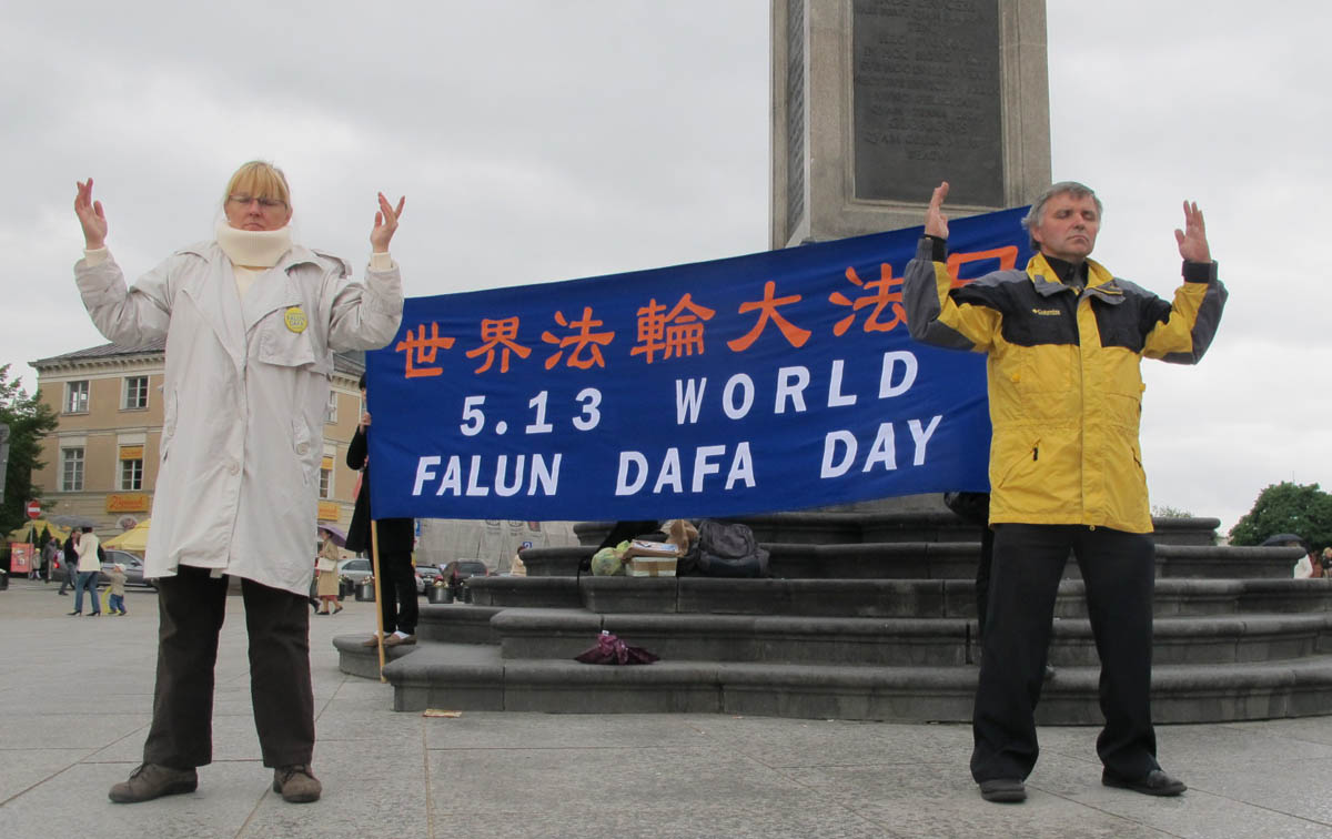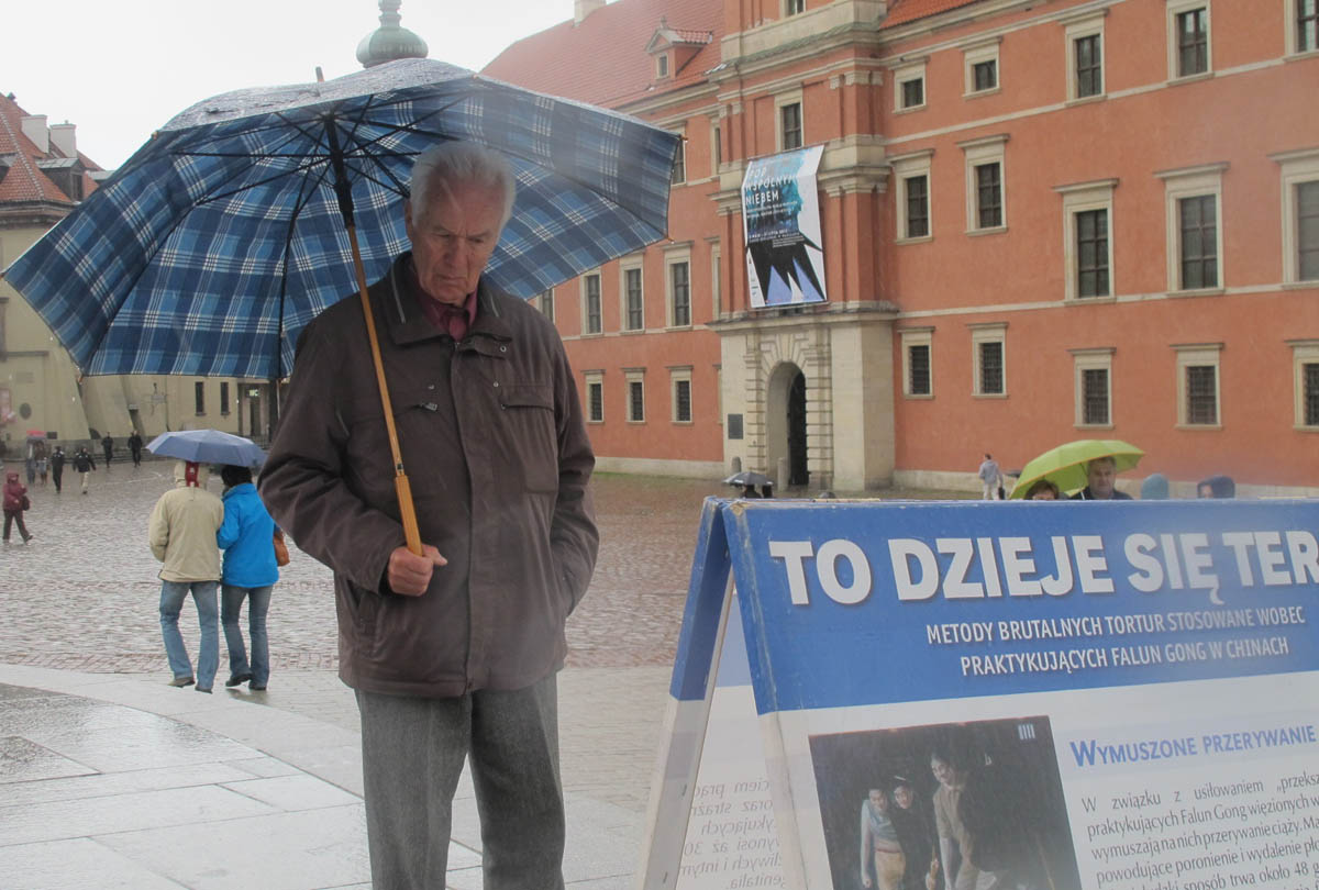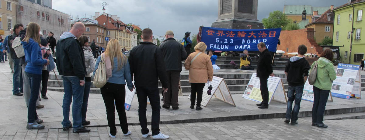 法轮功学员在古城打出一面中英文条幅,上写“5.13世界法轮大法日”,吸引了很多人的目光,不少人走上前询问并仔细观看,法轮功学员用亲身体会向他们讲述法轮大法的美好,讲述法轮大法在世界上的洪传,讲述法轮大法如何提高人的道德观念进而带来身心健康、社会稳定和世界和平,讲述每年的五•一三因此被定为世界法轮大法日。很多波兰人对此表现出极大的兴趣。