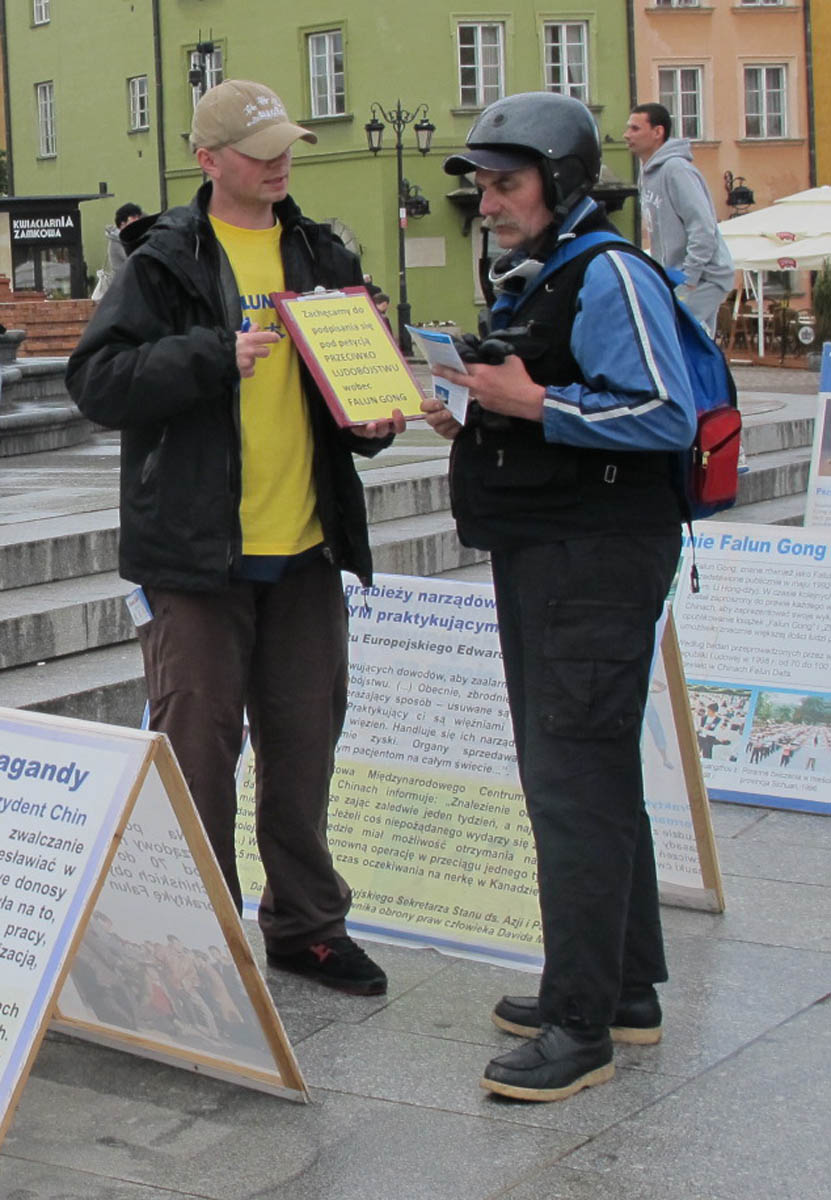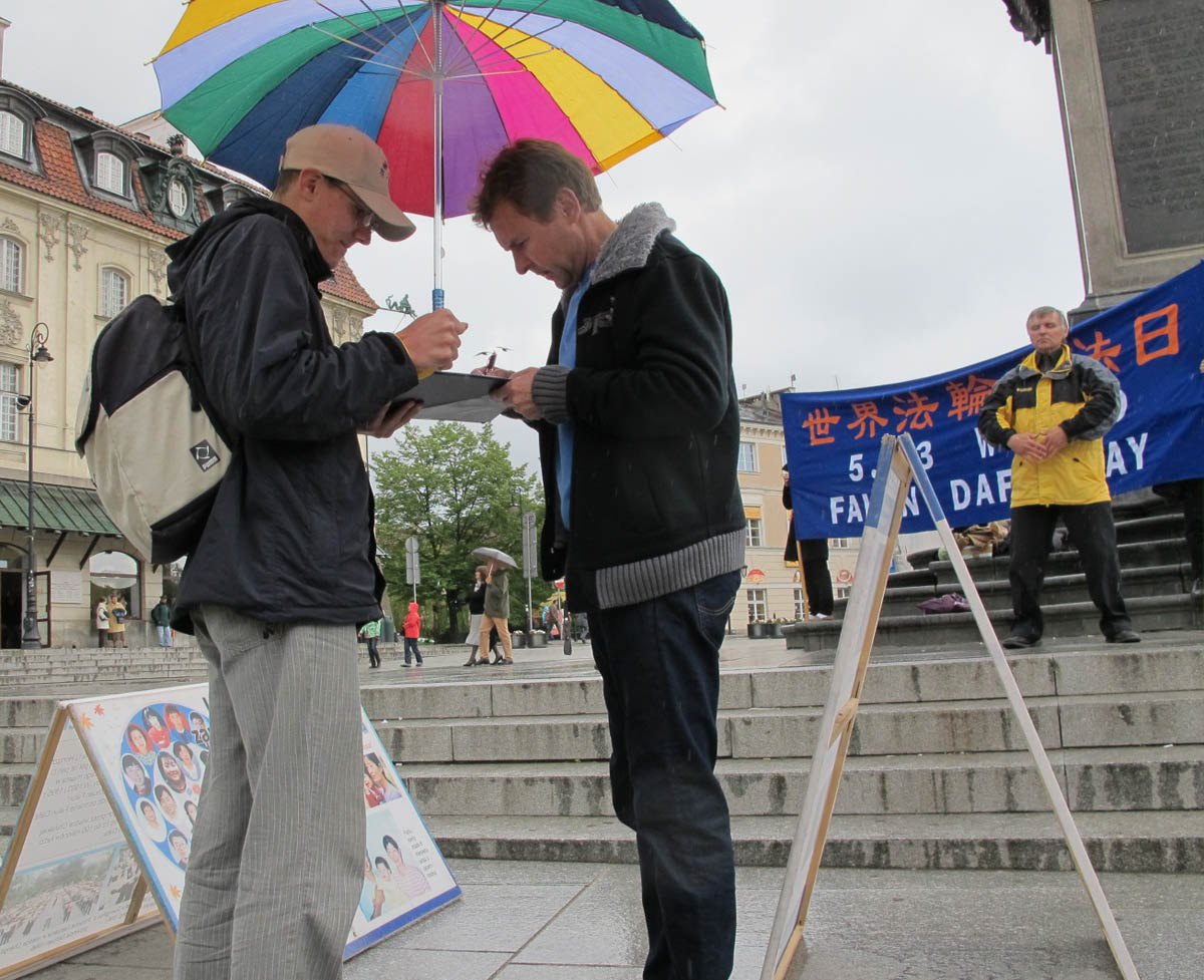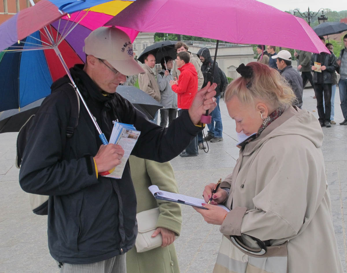 ![]() 波兰市民现场签名,反对中共迫害法轮功 |