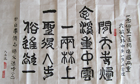 突然,孩子从后面冲上来,拉着我说:“妈妈,你看!”我顺着他指点的方向看去,哇!好美丽的一景,好宁静的一景,好壮观的一景,好辉煌的一景:一群法轮功学员静静的坐在故宫护城河边上炼功,身边是柳树,翠绿的柳枝随风在他们身边飘荡,护城河的水面宁静、清澈;她们对面不远处是故宫,傍晚的天空朵朵彩霞,夕阳的余晖洒落在故宫上,显得金碧辉煌,洒落在法轮功学员的身上,显得格外宁静。