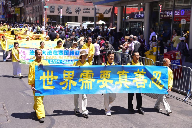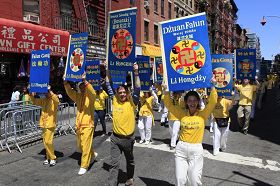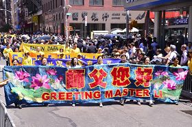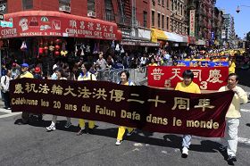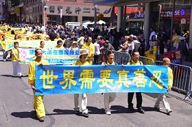 【明慧网二零一二年五月十八日】(明慧记者荷雨、穆文清纽约报道)二零一二年五月十二日,纽约曼哈顿晴空万里,风和日丽。在恩师华诞、法轮大法传世二十周年之际,约七千位来自世界各地的法轮功学员汇聚这世界之都,举行盛大游行集会。这些背景不同、经历各异的人们有着一个共同心愿,那就是希望以亲身经历和实践向世人见证师尊与大法的伟大,制止中共对正信的迫害,还世人一个了解真相并从中受益的机会。
