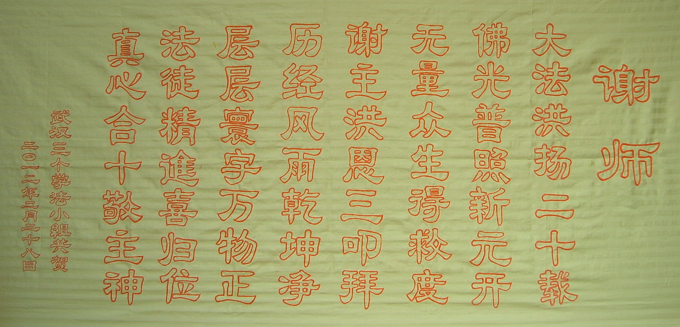 同修陆陆续续的来了,有认识的,有不认识的。交流会开始了,大家先集体发正念,然后同诵《论语》,我很震撼,老年同修们从交流会开始到结束都是双盘着的,他们背的那么洪亮、熟练、整齐,那场景就象《转法轮》中说的:“那个场不是一般的场,不是一般的练功那样的场,是个修炼的场。我们很多有功能的人都看到过我们法轮大法这个场,红光罩着,一片红。”