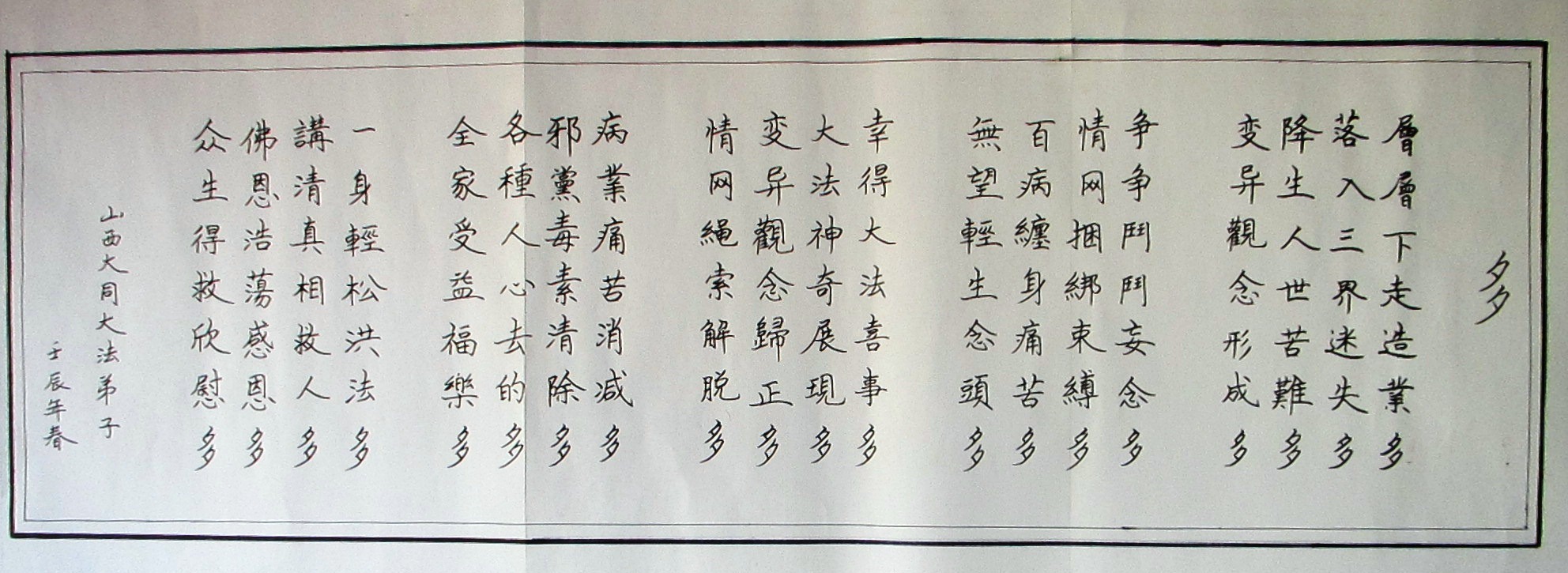 硬笔书法:多,作者:山西大同大法弟子雪莲