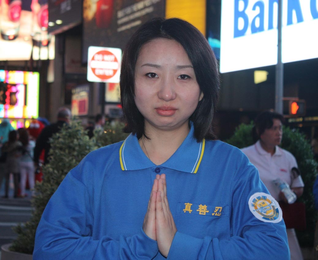 慈眉善目、文质彬彬的吴艳霞女士,二零零一年从中国大陆来到加拿大。参加了时代广场活动,她感慨于这些年自己见证法轮功学员和平理性反迫害的历程和世人的变化。她说:“我是迫害开始以后,二零零一年出来的。这么多年在海外向大陆民众讲真相,我最大的感受就是亲眼看到了海外的民众在这个整个过程当中的变化。第一个感受是看到法轮功在海外逐渐壮大。仅以游行举例,我当年出来的时候,参加了第一个圣诞节的活动,大家那时都是戴着圣诞帽参加游行,后来出现了腰鼓,腰鼓之后又出现了唐鼓,唐鼓出现后又有了天国乐团,天国乐团现在发展到那么大。我感到高兴的是,法轮功在中共的迫害下并没有倒下去,而是越来越壮大,这是第一个感受。”