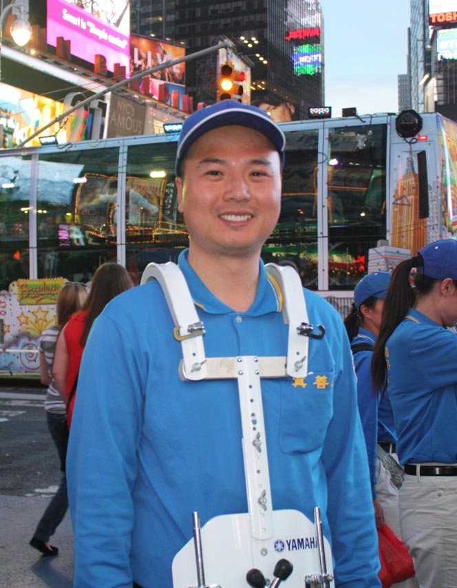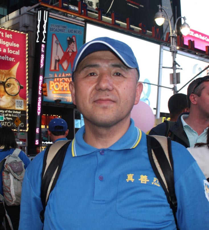 章俊来自日本,在现场他感慨万千:“今天很激动。纽约是世界之都,而且时代广场是世界之都的中心。在这样一个地方,在中国遭受迫害的法轮功,世界各国的法轮功学员能够聚集在世界之都的中心这个地方,以丰富多彩的文艺形式来庆祝大法洪传二十周年,我觉得非常的有意义。能够在这样一个自由的都市来向世人展现大法的美好,展现法轮功被迫害中走过的历程,始终怀有希望,怀有信心,始终没有放弃替人类坚守这种普世的道德,作为学员,我觉得非常自豪,非常激动,非常兴奋。”