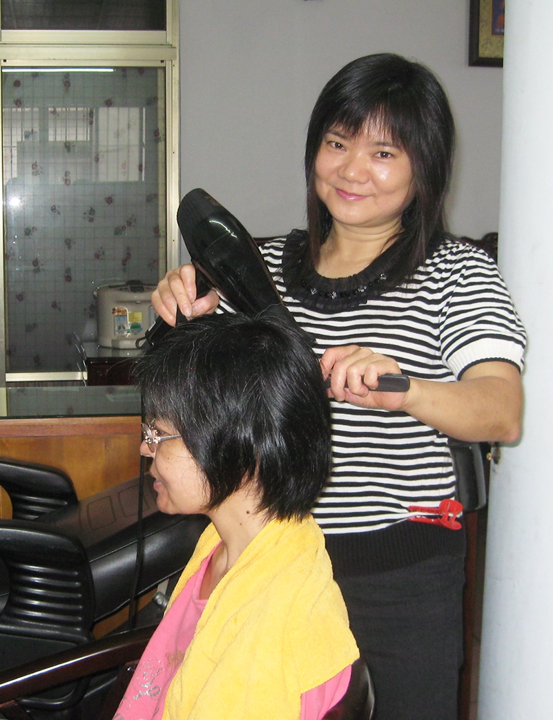 今年五十岁,个子娇小,拥有一间个人美发工作室的丁映仁,是个典型的朴实又勤快的台湾人。丁映仁自小体弱多病,多愁善感。从懂事以后,一直觉得人生很苦,人世间的名利和情感如过眼烟云,并不能带给她踏实感。她总是在寻觅如何能超脱轮回,不想再当人受苦。所以她年轻时很喜欢看劝人行善的书,结婚时还把那些书当成嫁妆的一部份带到夫家。也曾在宗教中寻觅,然而她还是感觉无法斩断轮回,那些不是她所想要的。